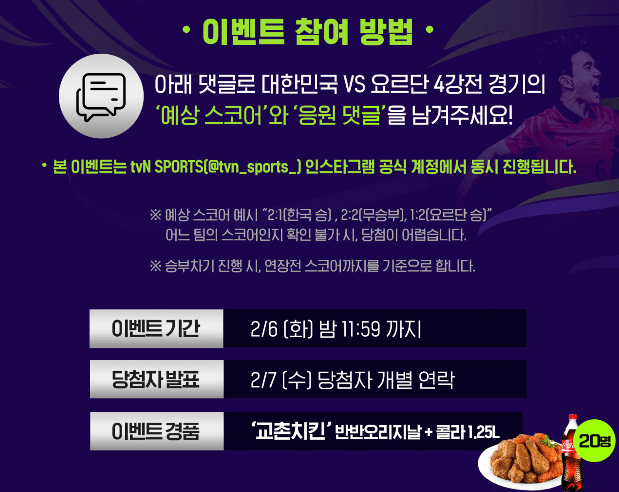 예선 2차전에서 2대2로 비겼던 요르단을 4강전에서 다시 만나게 되었습니다. 4강에는 경고누적으로 김민재 선수의 출전이 불가능한 상황입니다. 이외의 엘로우카드들은 리셋이 되어 김민재 선수를 제외한 모든 선수들은 출전이 가능한데요. 설날에 열리는 결승전을 위하여 우리모두 한 뜻으로 응원하였으면 좋겠습니다! 🇰🇷🇰🇷🇰🇷🇰🇷🇰🇷