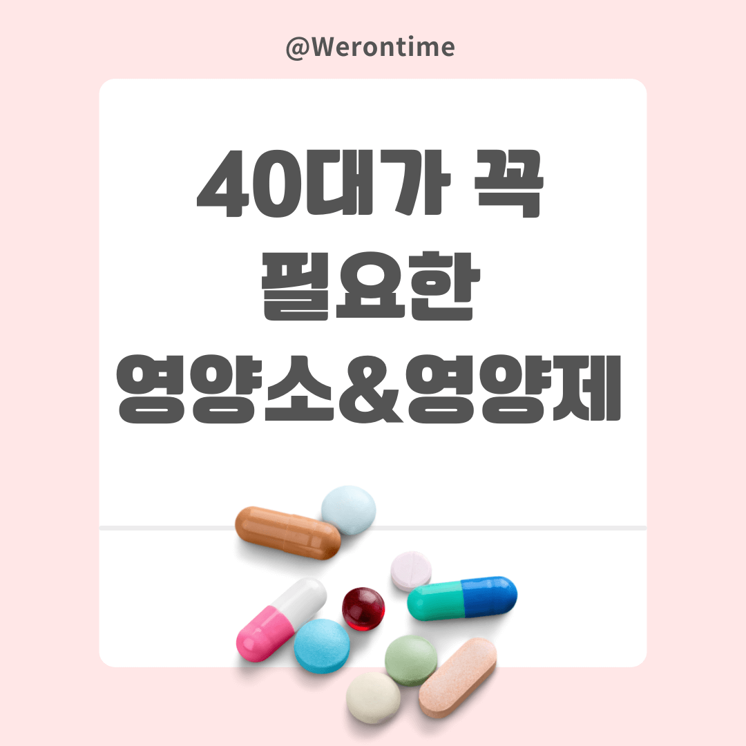 어느덧 40대가 되면 건강에 더욱 신경을 써야 할 때 입니다. 이번 포스팅에서는 40대에게 꼭 필요한 영양소와 추천하는 영양제에 대해 알려드리겠습니다. 포스팅을 보시고 건강을 잘 준비하시어 함께 건강한 삶을 준비해봐요.